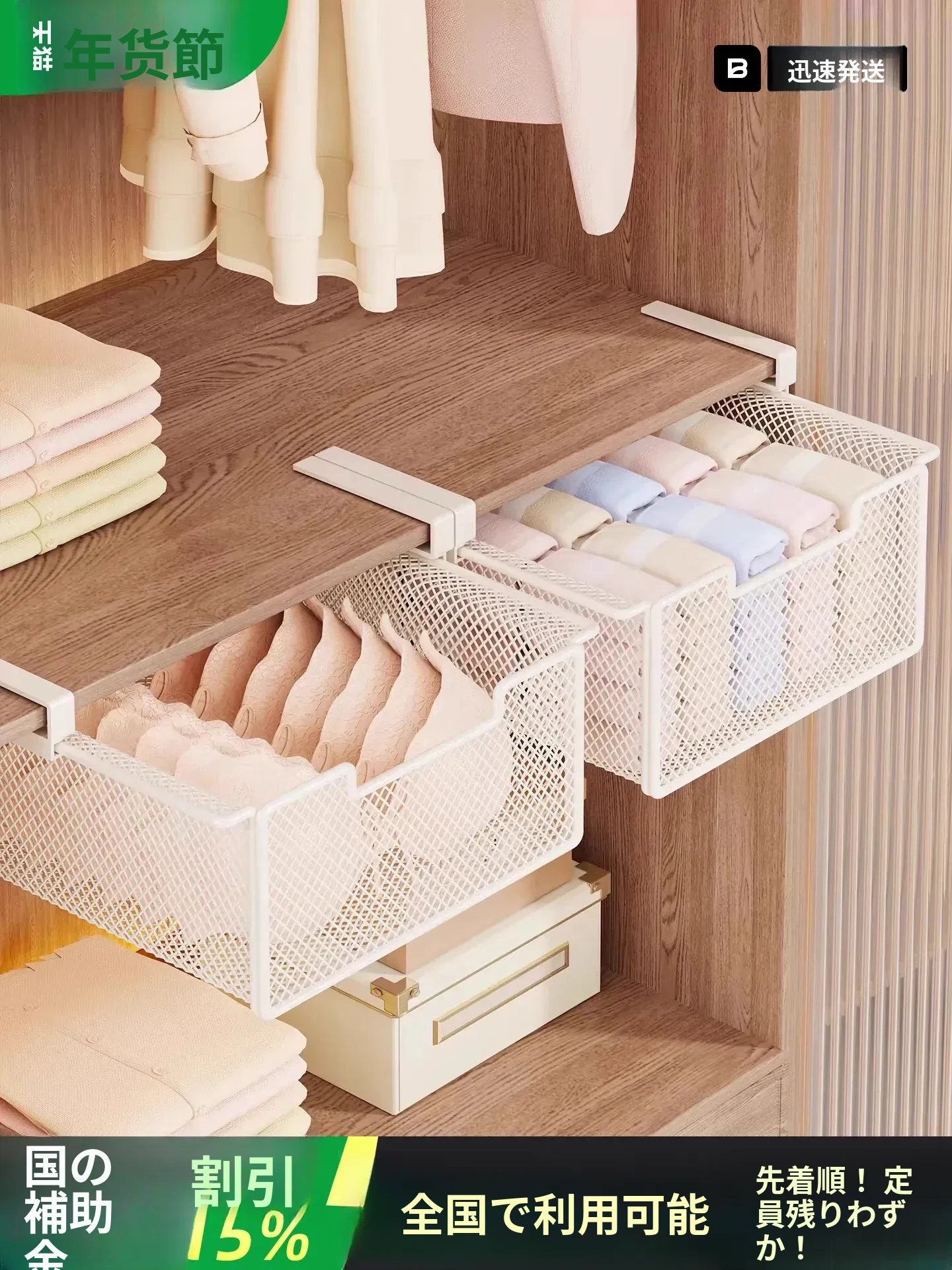 クローゼット収納の革命!引き出し式・分層棚板で整理整頓を簡単に!下掛け式で、下着や靴下をスマートに収納できる壁掛けキャビネット。あなたの生活空間をもっとスッキリさせましょう!
