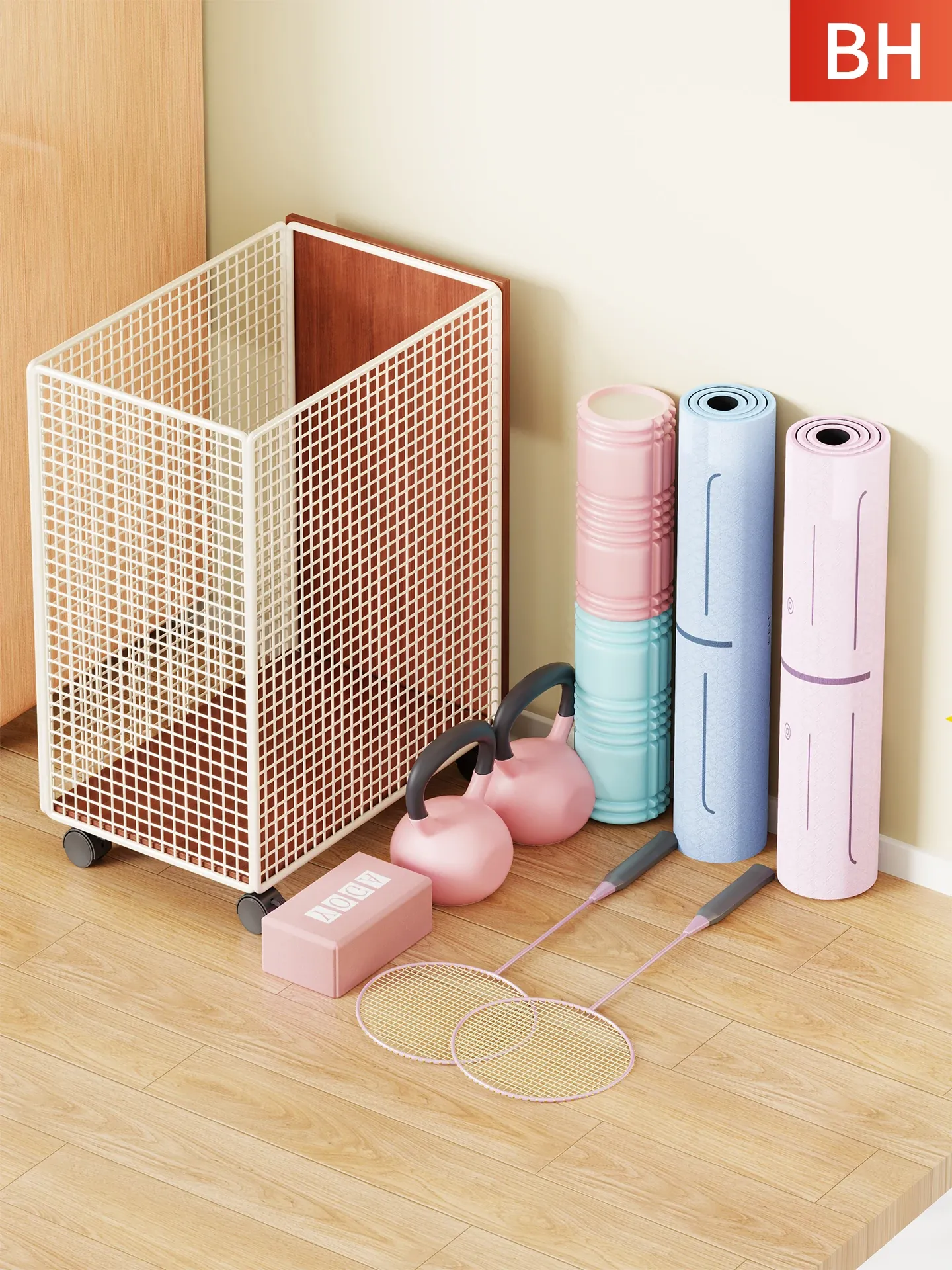 ヨガマット収納バスケット 大容量・キャスター付きで移動もラクラク!フィットネス用フォームローラーや狭い隙間にもぴったりな収納ラック。家での運動をもっと快適に!