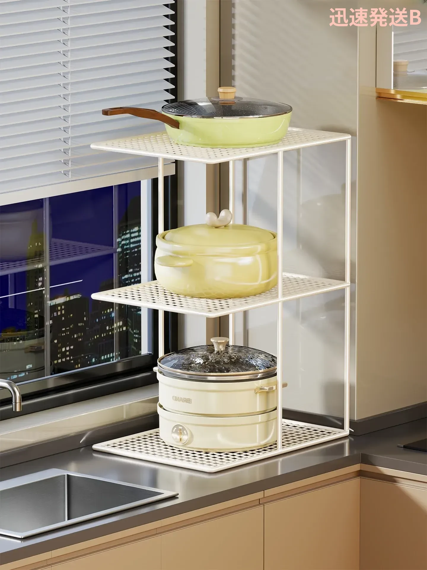 キッチン収納ラック - コンロ・食器棚用の多層収納、シンク下の鍋や野菜かごを整理整頓!スペースを有効活用し、使いやすさ抜群のアイテムです。