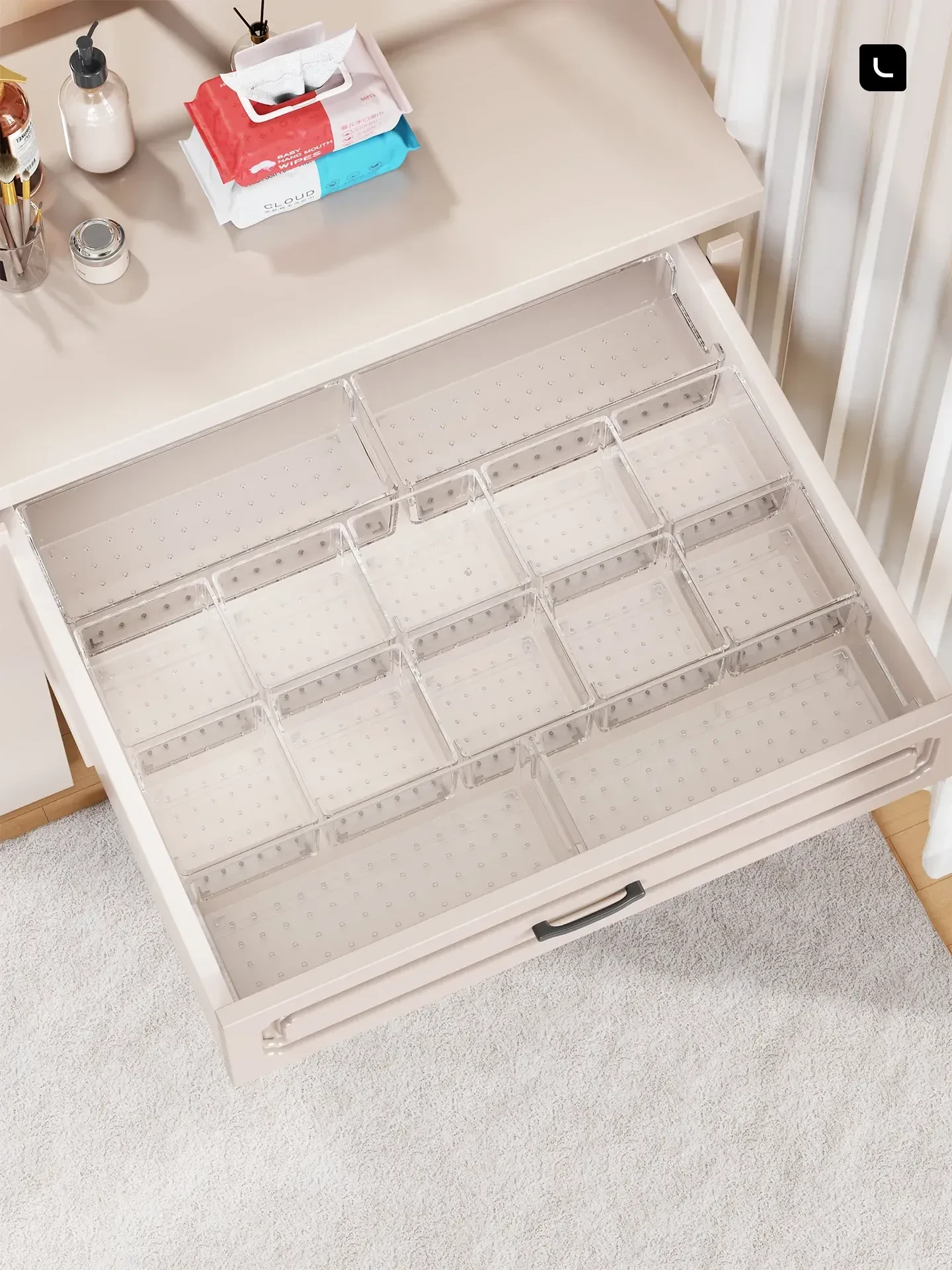 透明化粧品収納ボックス|メイク台用引き出し仕切り|化粧ブラシスタンド&リップ収納に最適!深いキャビネット用スペース活用ボックスで、あなたのメイク道具をすっきり整理!